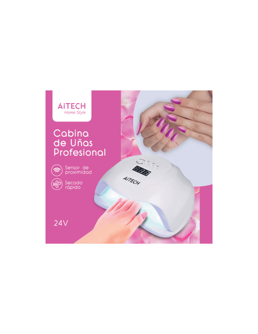 Potencia 54W (24V), secado rápido y uniforme en segundos.